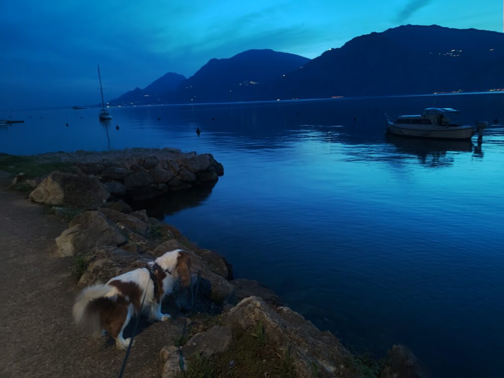 Carmel shares my love for Northern Italy. He always finds plenty to do here – during the day, he chases butterflies and little lizards, which are quite common. In the evenings, he’s busy darting after bats that often fly low over the water, right by the shore. This place is truly his little paradise.