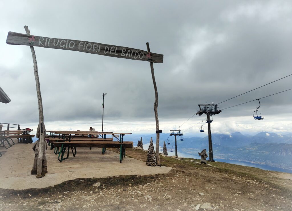 We took a break halfway along the route in the Rifugio Mondini-Baito Turri. There is a bar and restaurant with the tarracce overlooking the lake.