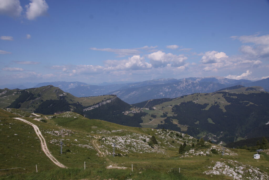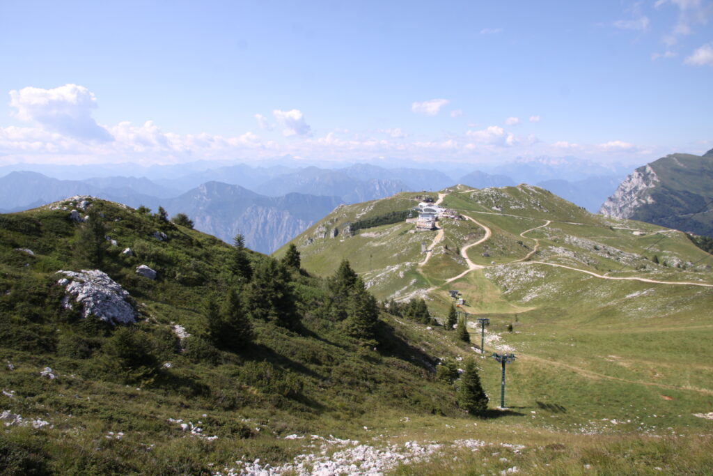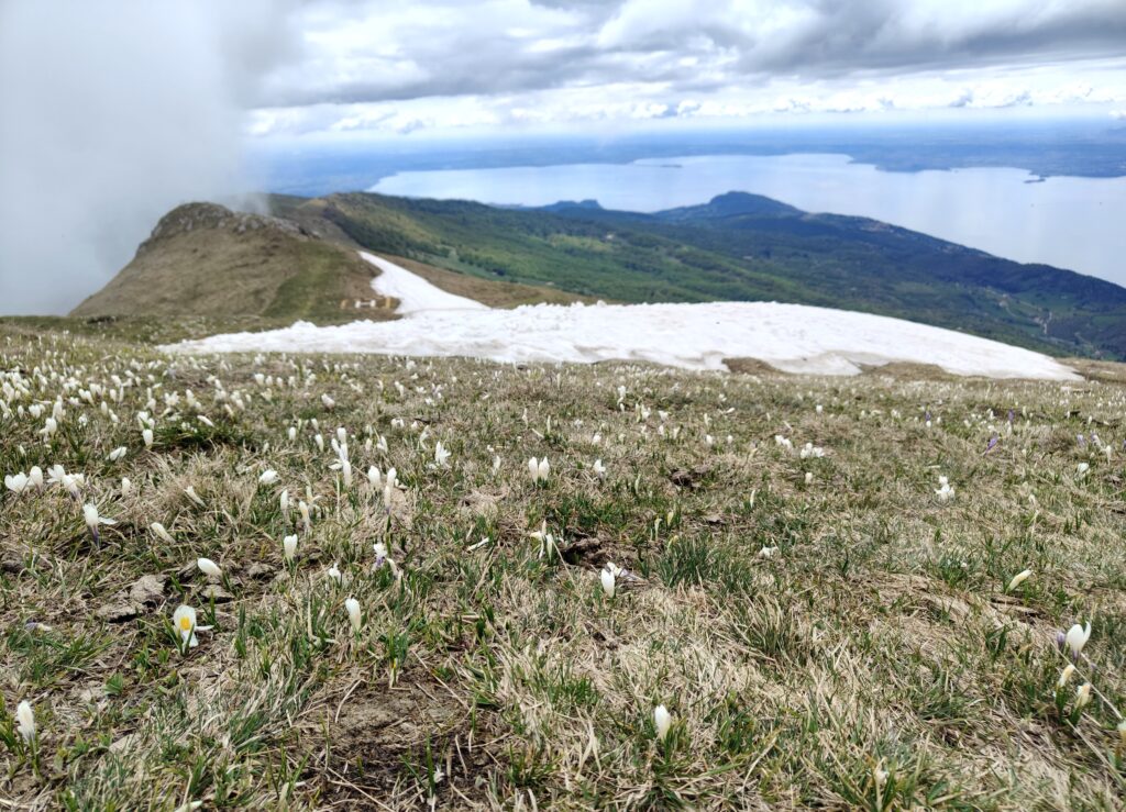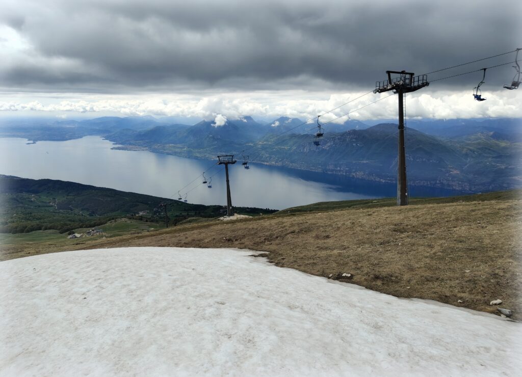 At the arrival station, the view was much better, but there was also snow – it was the beginning of May! It cleared up, so we did a little hike there. From the arrival station there are numerous trails leading to mountain refuges.